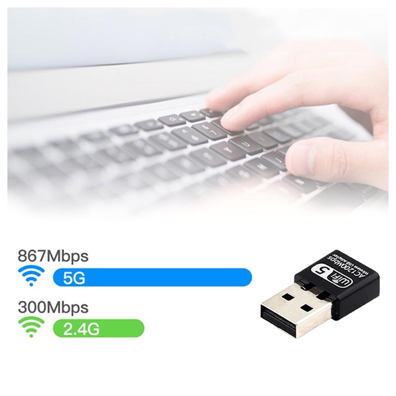 Connect easily and safely to a WiFi network thanks to this mini WiFi USB dongle/adapter! Dual-band enables high-speed connection with 2.4GHz (up to 300Mb/s) or 5GHz (up to 867Mb/s) wireless network. Use a USB dongle also to create a WiFi hotspot.