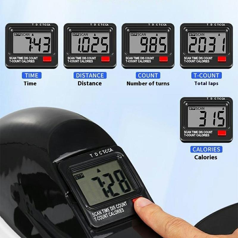 De trainer is uitgerust met een duidelijk LED-scherm waarop de tijd, de herhalingen en het geschatte aantal verbrande calorieën worden weergegeven. Dit helpt je om je voortgang direct bij te houden en gezonde, gestructureerde trainingssessies te houden.
