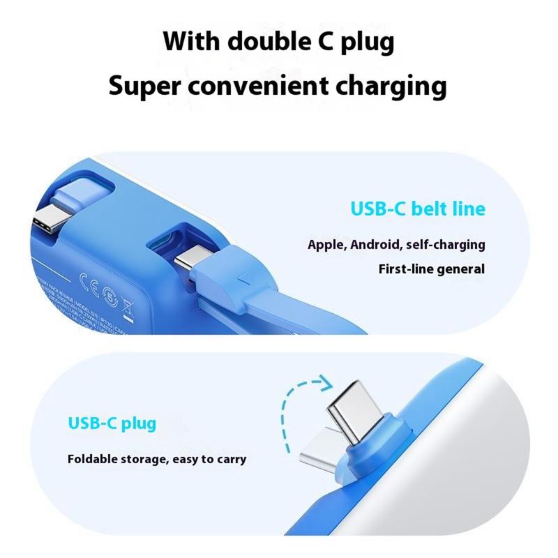 - 3-poorts ontwerp (ingebouwde USB-C kabel en USB-C connector & USB-C poort) ondersteunt gelijktijdig opladen van apparaten