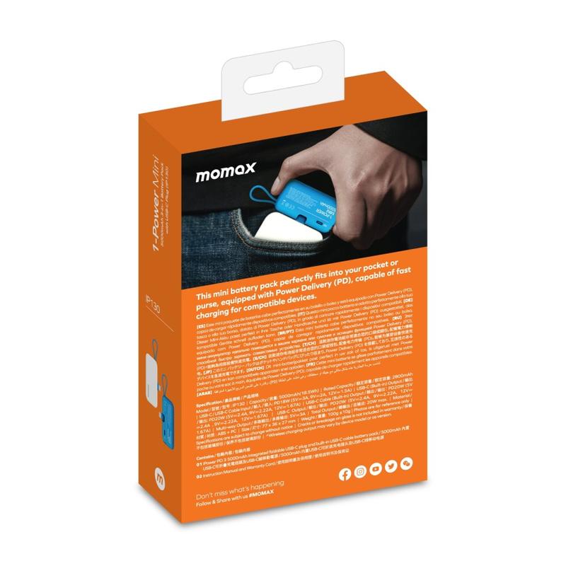 Momax 1-Power Mini Pop Art 5000mAh Power Bank / Draagbare Lader met USB-C Stekker, USB-C Kabel, USB-C Poort - 20W