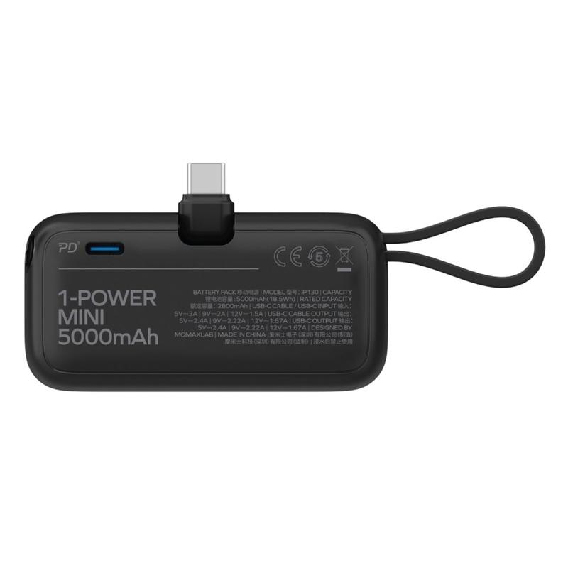 Momax 1-Power Mini Pop Art 5000mAh Power Bank / Draagbare Lader met USB-C Stekker, USB-C Kabel, USB-C Poort - 20W