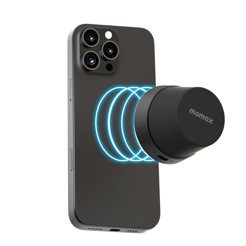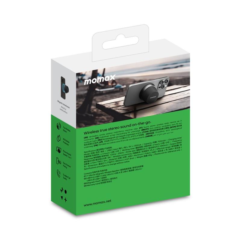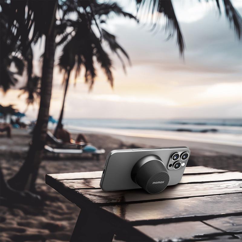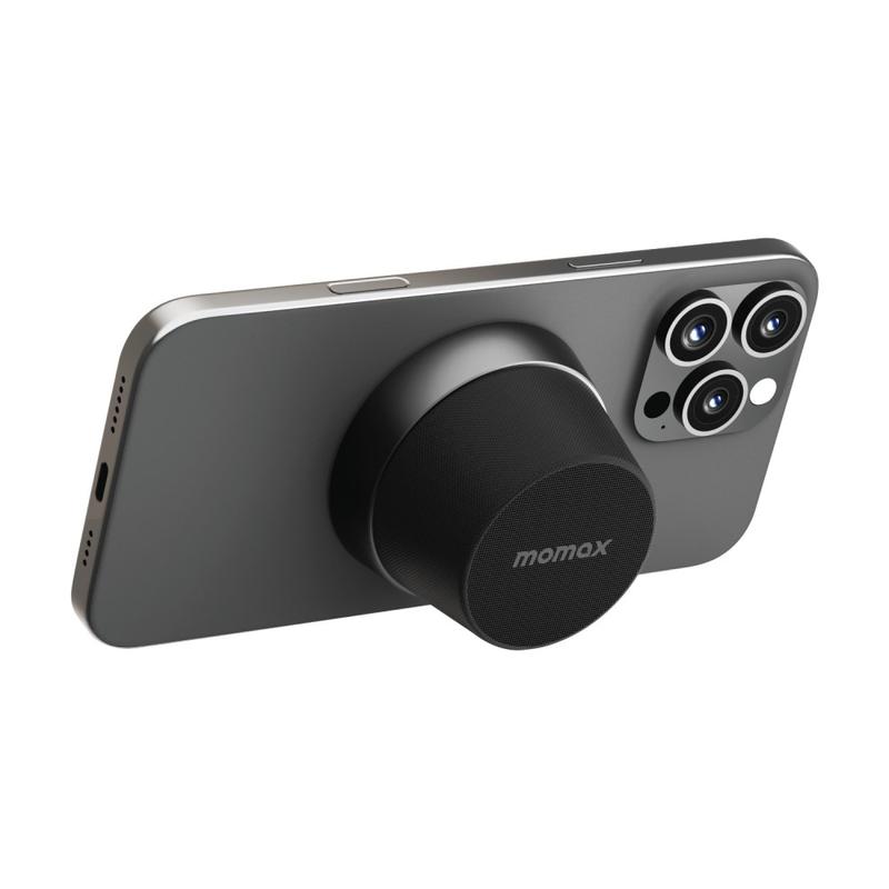 Momax 1-Vibe Go BS6 magnetische mini-Bluetooth-luidspreker en telefoonstandaard, 360° geluid en IPX6 waterdicht