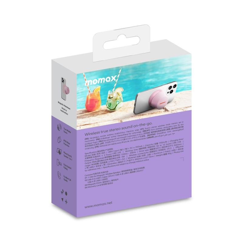 Momax 1-Vibe Go BS6 magnetische mini Bluetooth-luidspreker en telefoonstandaard - roze