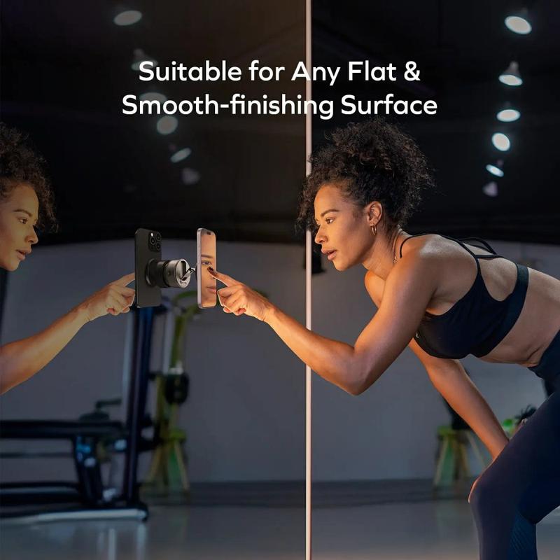 Bevestig uw telefoon binnen enkele seconden waar u maar wilt - zonder lijm, zonder klemmen, zonder gedoe. De MOMAX KH20 1-Snap Go combineert gemotoriseerde vacuümzuigkracht met een krachtige magnetische telefoonhouder, waardoor u een schone, veilige bevestiging krijgt op gladde oppervlakken zoals spiegels, glas, bureaus, koelkastdeuren en autoruiten. De elektrische zuignap past de druk op intelligente wijze aan voor een sterkere grip en blijft daarbij stil, en dankzij de N52-magneet klikt uw telefoon direct op zijn plaats zonder lastig uitlijnen.