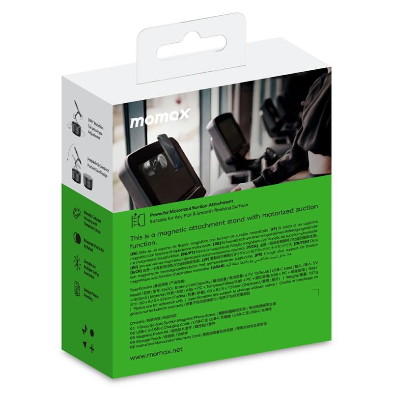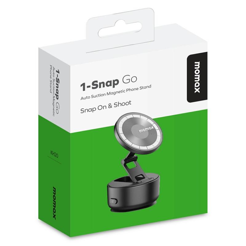 Momax KH20 1-Snap Go elektrische magnetische telefoonhouder - gemotoriseerde automatische zuignapbevestiging, drieassige opvouwbare houder met 360° rotatie, oplaadbaar via USB-C
