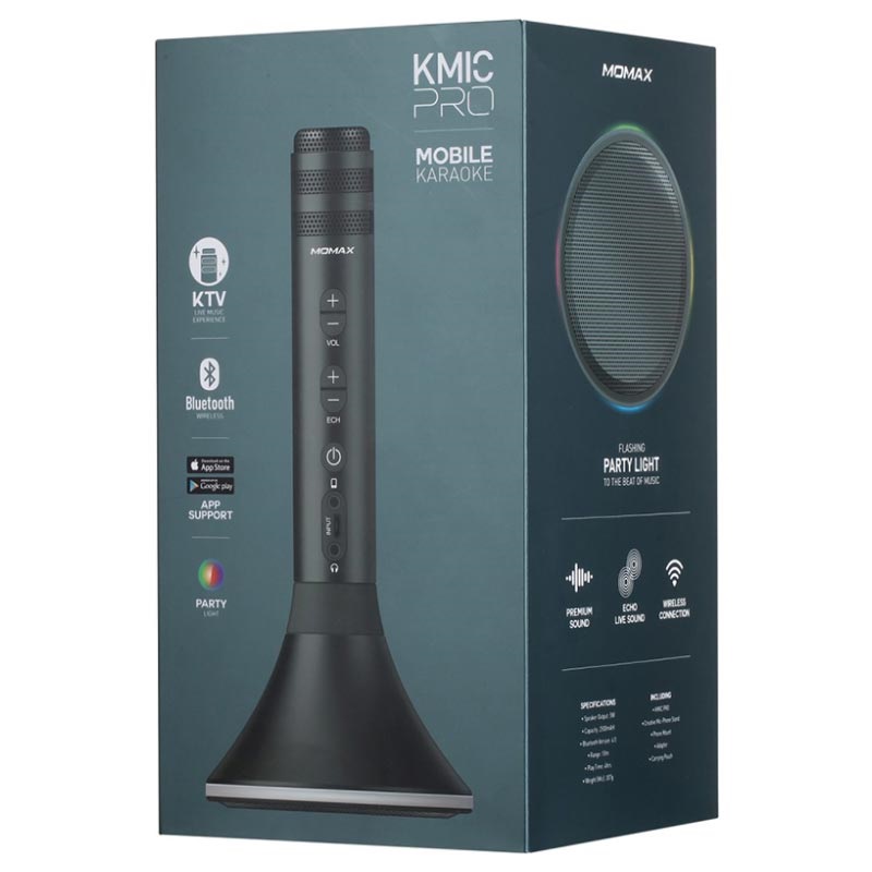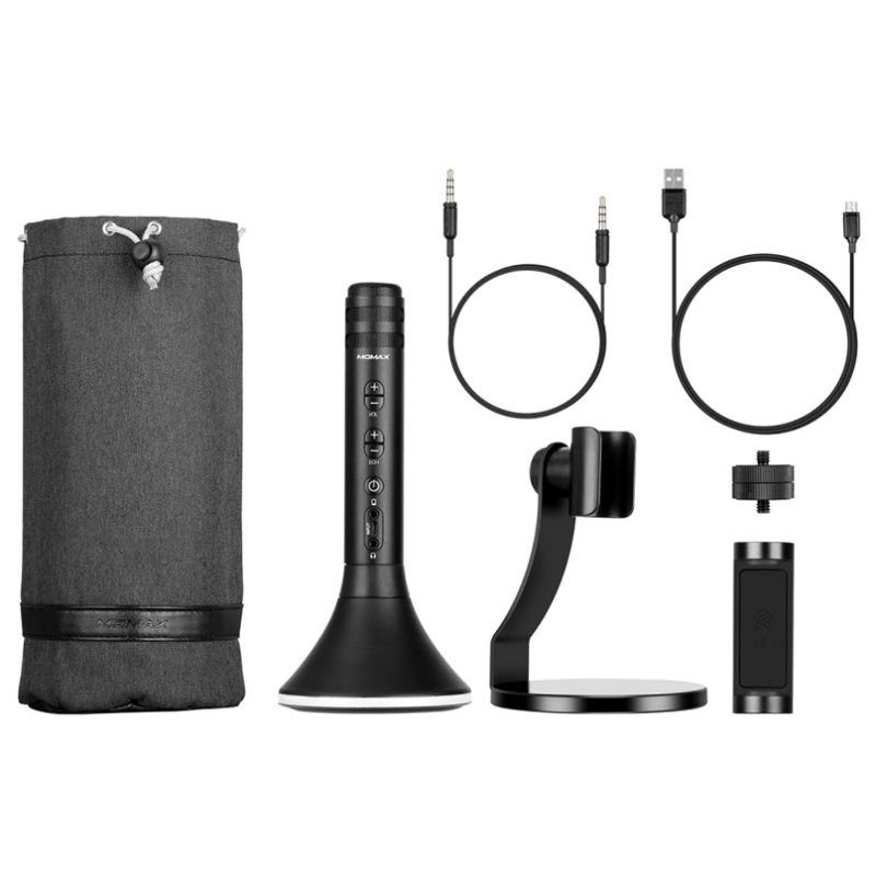 Momax Kmic Pro Draadloze KTV Microfoon voor Karaoke met Smartphone Houder en LED licht - Bluetooth 4.0, 2x 3.5mm, 2500mAh