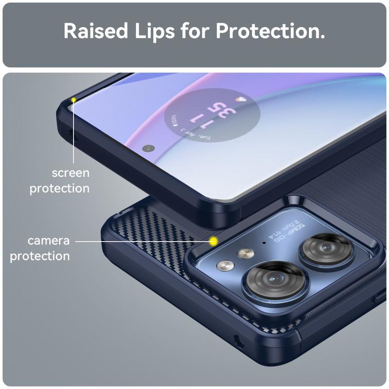 Het hoesje van geborsteld TPU beschermt je Motorola Edge 40 voldoende en geeft het een geweldige stijl, dankzij het koolstofvezelpatroon op de achterkant. De case zorgt ook voor oververhitting bij gebruik van je Motorola Edge 40, met zijn ontwerp voor warmteafvoer.