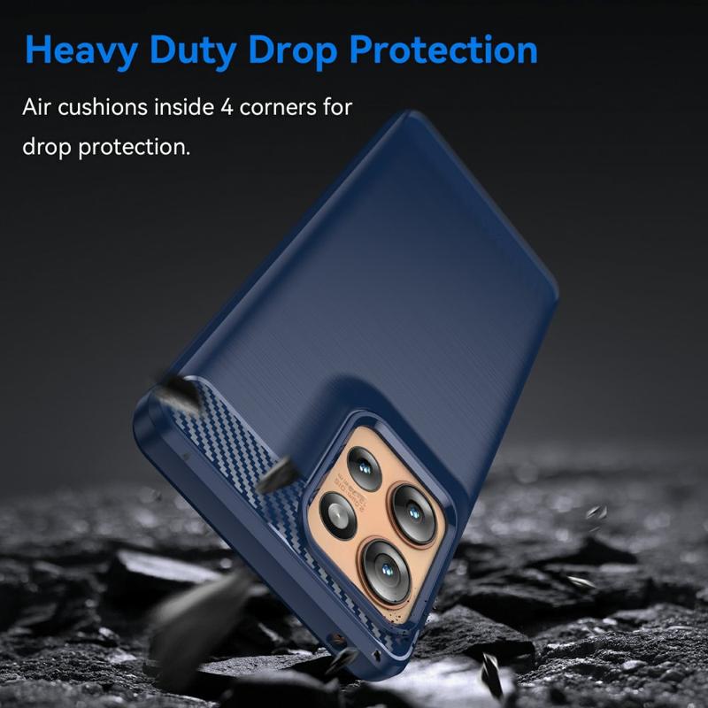 Het hoesje van geborsteld TPU beschermt je Motorola Edge 50 voldoende en geeft het een geweldige stijl, dankzij het koolstofvezelpatroon op de achterkant. De case zorgt ook voor oververhitting bij gebruik van je Motorola Edge 50, met zijn ontwerp voor warmteafvoer.