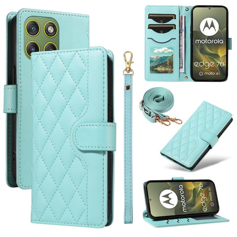 Luxe Gewatteerd Portemonnee Hoesje met Schouder & Polsband voor Motorola Edge 70 - Beschermende Hoes met Ruitpatroon