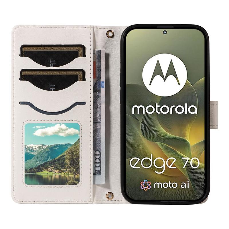 Luxe Gewatteerd Portemonnee Hoesje met Schouder & Polsband voor Motorola Edge 70 - Beschermende Hoes met Ruitpatroon