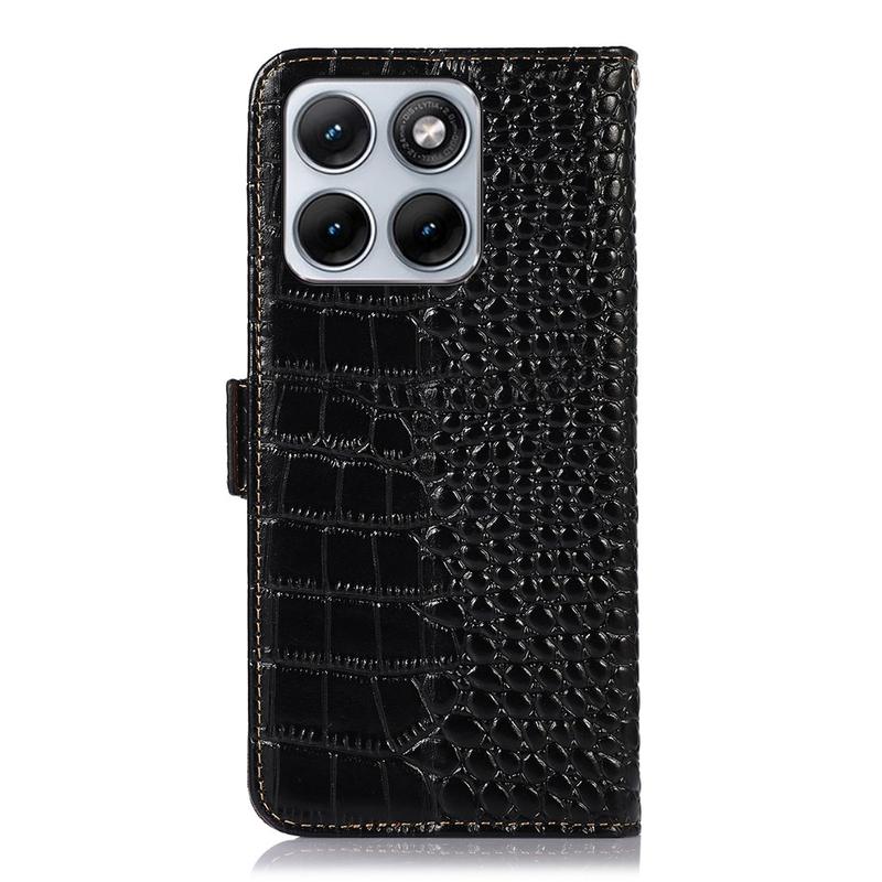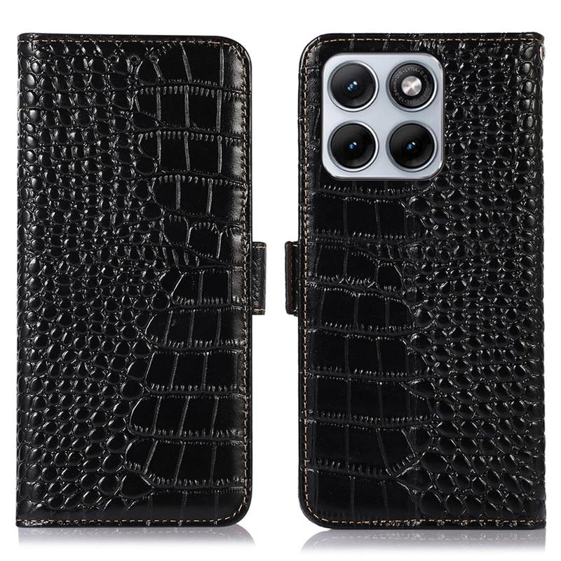 Motorola Edge 70 Fusion Crocodile Series Wallet Leren Hoesje met RFID - Zwart