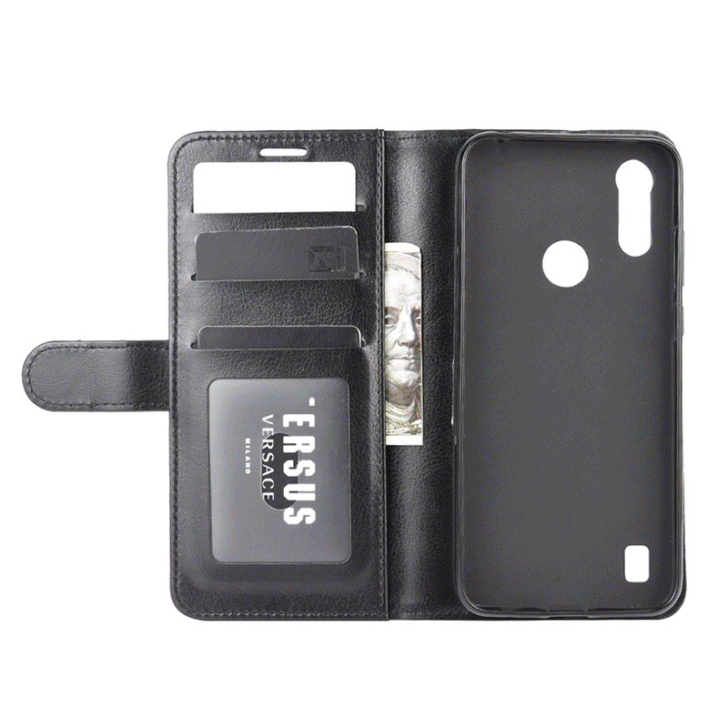 Het is gemaakt van lichtgewicht polyurethaan en heeft kaartsleuven aan de binnenkant, een geldvak en een extra TPU-hoesje voor je Motorola Moto E6s (2020). Hij biedt absolute veiligheid tegen beschadiging en is voorzien van een opvouwbare voorflap waarmee je je Motorola Moto E6s (2020) in een comfortabele kijkpositie kunt zetten.