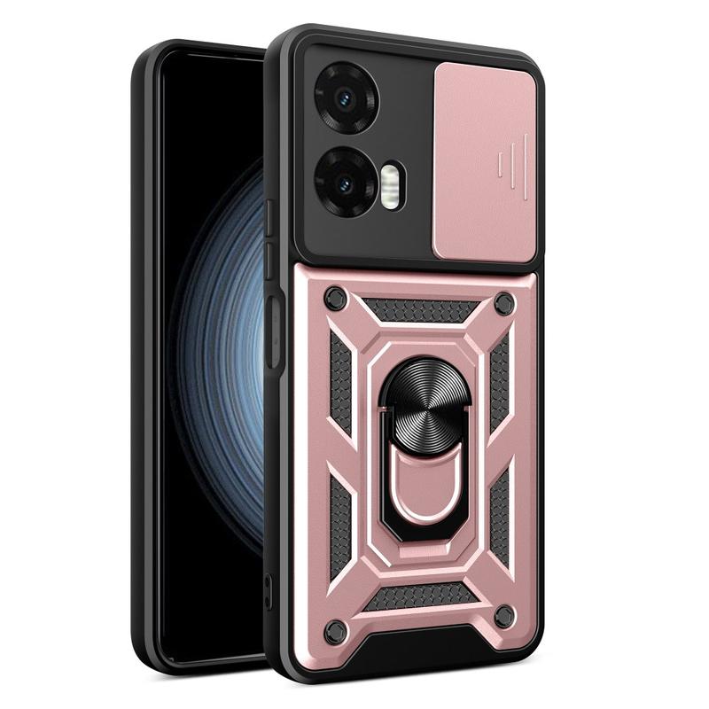 Motorola Moto G35 Roterende ring hybride hoesje met camera schild - Rose Gold