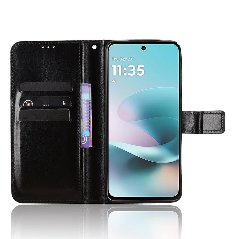 Geef je nieuwe Motorola Moto G67 Power, Moto G57 Power, Moto G57 een verfijnde, vintage look en vervang je alledaagse portemonnee. De buitenkant van polyurethaan met Crazy Horse-textuur wordt gecombineerd met een schokabsorberend TPU-omhulsel dat bescherming biedt tegen vallen en krassen, terwijl slimme vakjes pasjes en geld op orde houden.