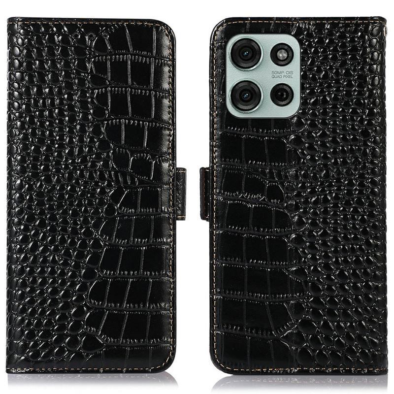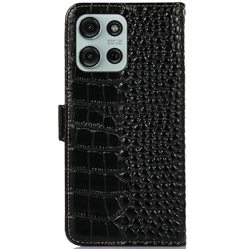 • Crocodile Series Wallet Leren Hoesje met RFID voor Motorola Moto G75