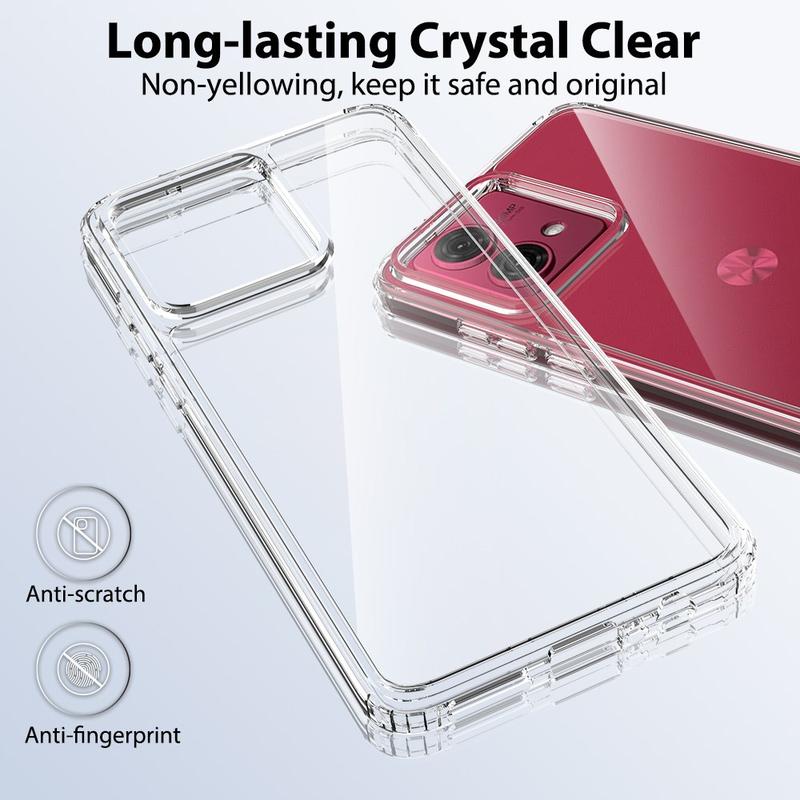 Dit accessoire maakt gebruik van een combinatie van acryl en TPU om je smartphone in ongerepte staat te houden. Ondertussen voorkomen de versterkte, schokabsorberende hoeken valschade, terwijl het transparante ontwerp het prachtige ontwerp van je Motorola Moto G84 laat zien.
