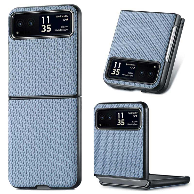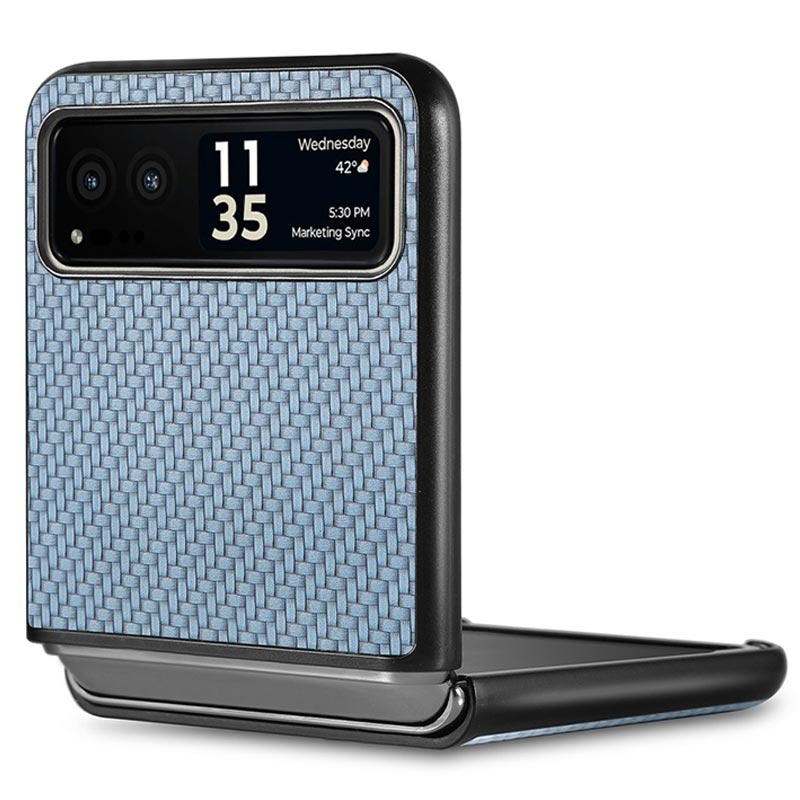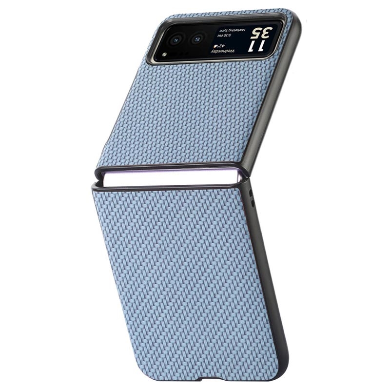 Deze slanke, duurzame hoes is gemaakt van plastic, overgoten met fijn polyurethaan met een koolstofvezel textuur die de grip en het aangename handgevoel verbetert. Toch is het hoesje licht van gewicht en slank, en blijft je Motorola Razr 40 net zo functioneel als anders.