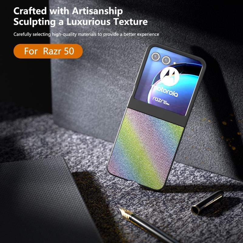Verhoog de bescherming en stijl van je Motorola Razr 50 met deze Anti-Slip Grip Lederen PC Telefoonhoes. De combinatie van luxe materialen, robuuste bescherming, en een stevige grip, deze cover is de perfecte accessoire voor elke professional.