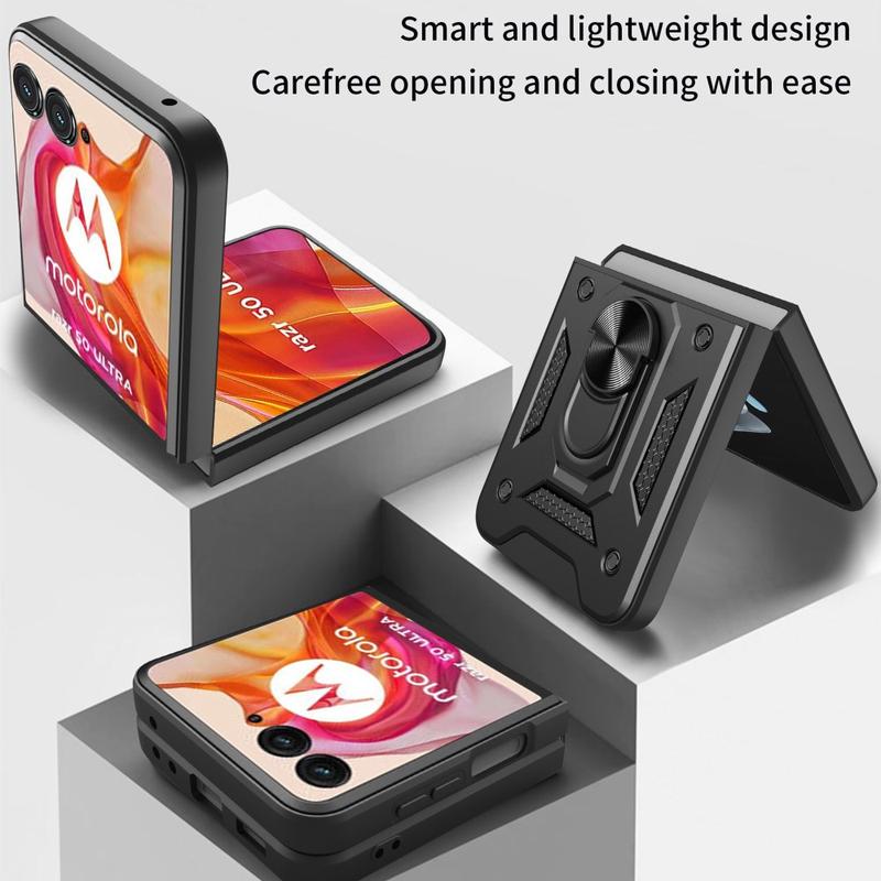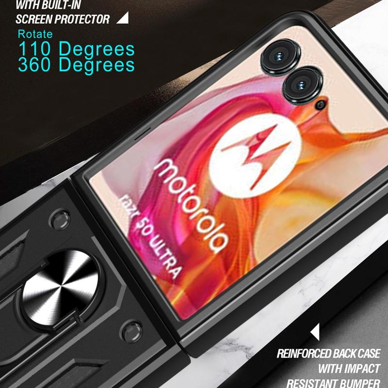 Met een ingebouwde ringhouder aan de achterkant kan deze hybride hoes eenvoudig worden omgevormd tot een standaard voor comfortabel video kijken, lezen of media bekijken op uw Motorola Razr 50 Ultra. Naast deze deugden biedt deze hybride behuizing indrukwekkende beschermende prestaties tegen dagelijkse schade.