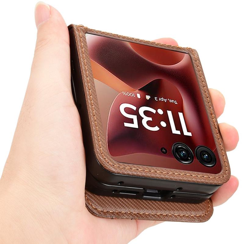 Motorola Razr 60 Ultra FlexCard Carbon Fiber Style hoesje met kaartsleuven - Bruin