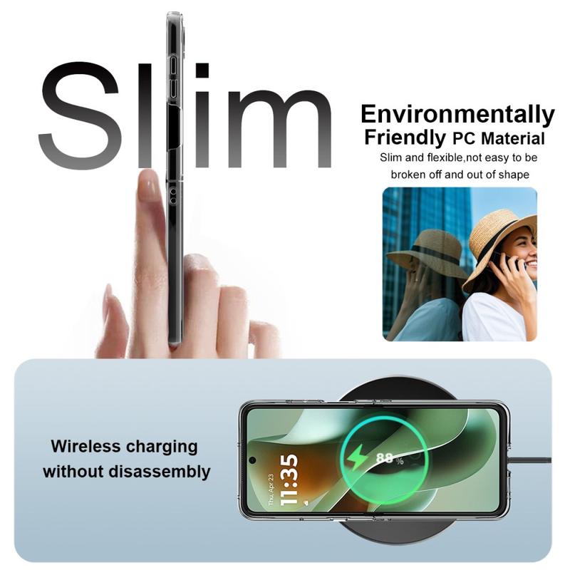 Deze behuizing van polycarbonaat beschermt uw smartphone tegen slijtage, deuken en stoten zonder het uiterlijk en gevoel echt aan te tasten. De slanke vormfactor zorgt voor maximaal comfort en geen extra gewicht, terwijl het hoogwaardige, transparante materiaal de originele kleur van je Motorola Razr 60 Ultra behoudt.