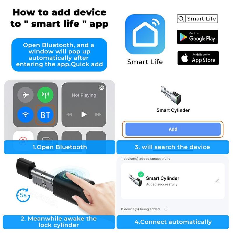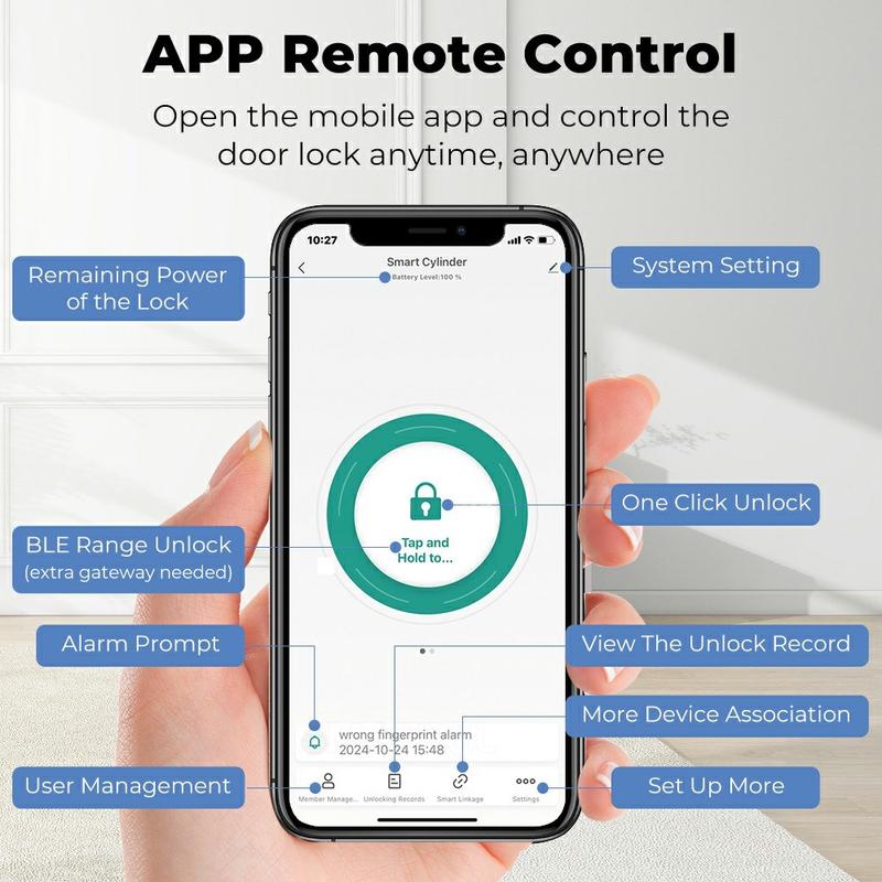 Deze slimme slotcilinder ondersteunt 5 verschillende ontgrendelingsmethoden, waardoor u gemakkelijker de optie kunt kiezen die bij uw routine past. U kunt de deur ontgrendelen via de app, vingerafdrukherkenning, wachtwoordinvoer, IC-kaart of traditionele sleutel. Deze flexibiliteit is vooral handig voor huishoudens met meerdere gebruikers, gastentoegang, kantooromgevingen of iedereen die een handiger alternatief wil voor het altijd bij zich dragen van sleutels.