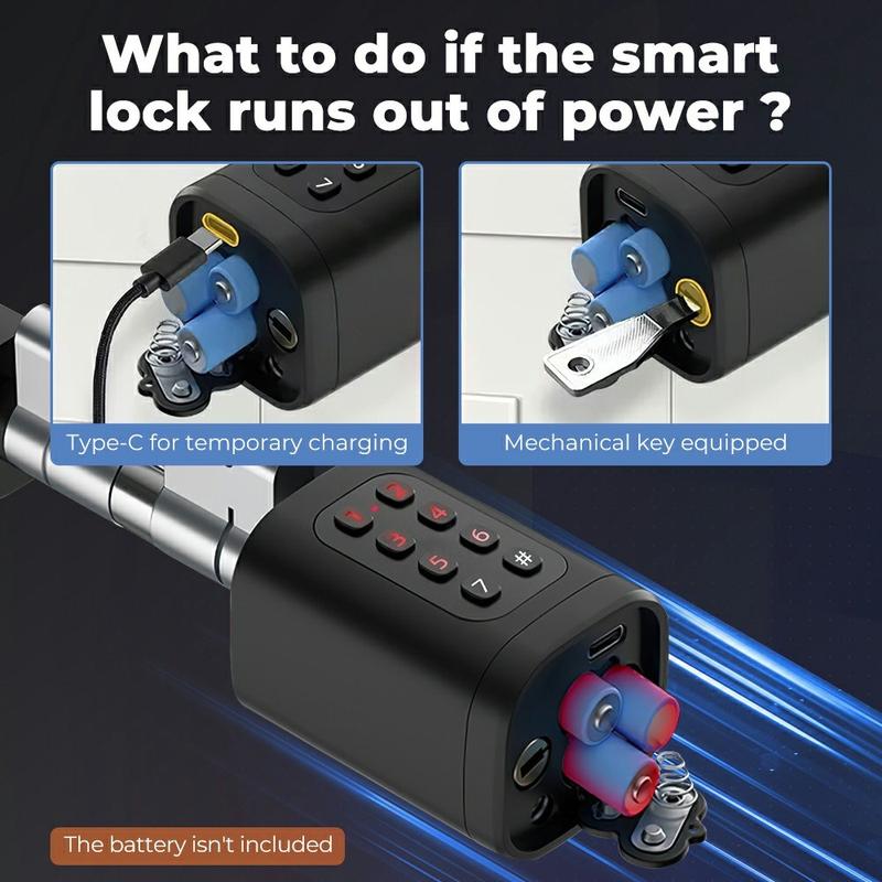 De MS001-B-BLU werkt op 3 AAA LR03-batterijen, dus er is geen vaste stroomaansluiting nodig. De batterijen gaan bij normaal gebruik tot 12 maanden mee, wat het onderhoud eenvoudig houdt. Als de batterijen leeg raken, kunt u het slot tijdelijk van stroom voorzien via de ingebouwde Type-C-noodoplaadpoort, zodat u de deur nog steeds kunt ontgrendelen zonder het risico te lopen buitengesloten te raken.