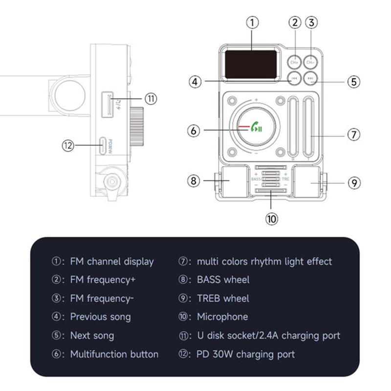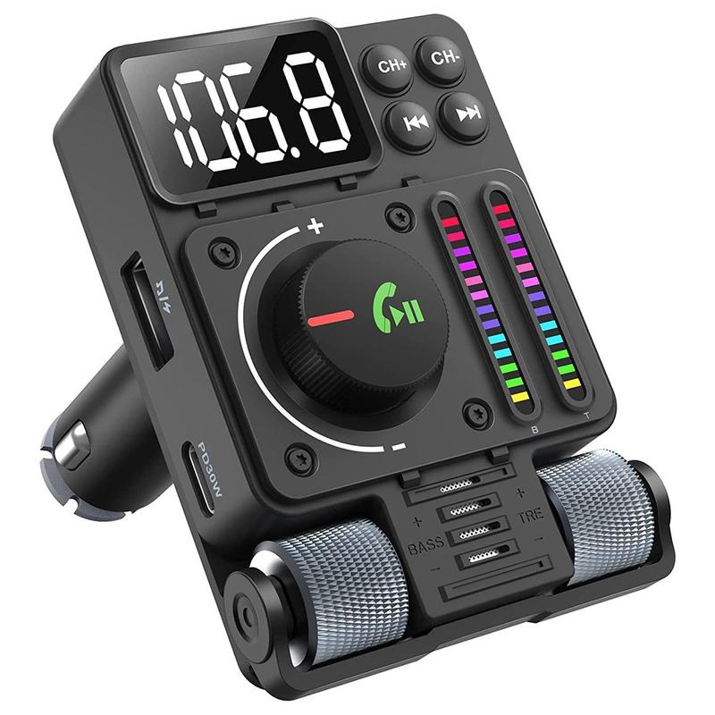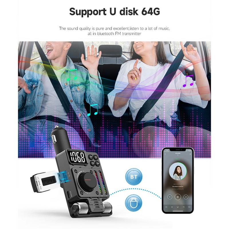 MT01 Ambient Light Auto Bluetooth Adapter FM Zender MP3 Muziekspeler Type-C + USB Autolader