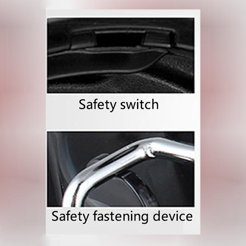 Het apparaat is gebouwd met uw veiligheid in het achterhoofd en is voorzien van een veiligheidsschakelaar en een veilig vergrendelarmsysteem, zodat de sapcentrifuge alleen werkt als deze correct is gemonteerd.