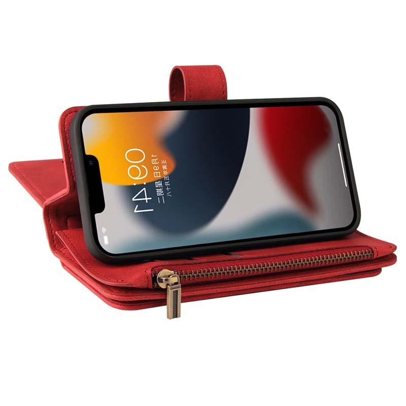 Bewaar je waardevolle spullen bij je iPhone 14 met deze multifunctionele portemonnee-hoes. Met meerdere sleuven en een vak met ritssluiting kunt u kaarten, documenten en wat geld opbergen, terwijl de meegeleverde riem onbedoeld laten vallen voorkomt. Deze stijlvolle portemonnee-hoes biedt een uitstekende bescherming voor uw iPhone 14 tegen stof, krassen en kleine stoten.