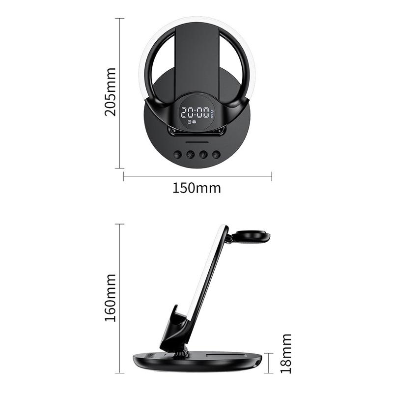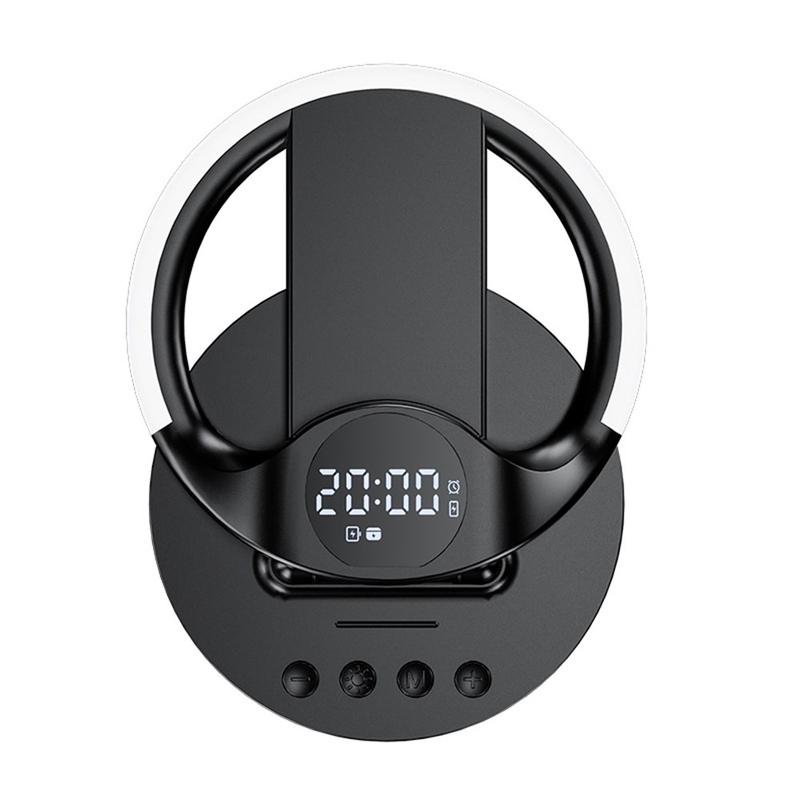N01 6-in-1 draadloos oplaadstation / magnetische snellaadstandaard met wekker, slimme temperatuurregeling en nachtlampje