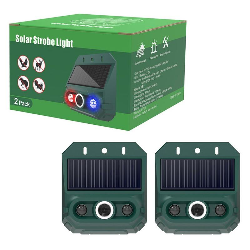 N911Z Ultrasoon vogelafweermiddel op zonne-energie met LED-knipperlicht en bewegingssensor - 2 stuks.