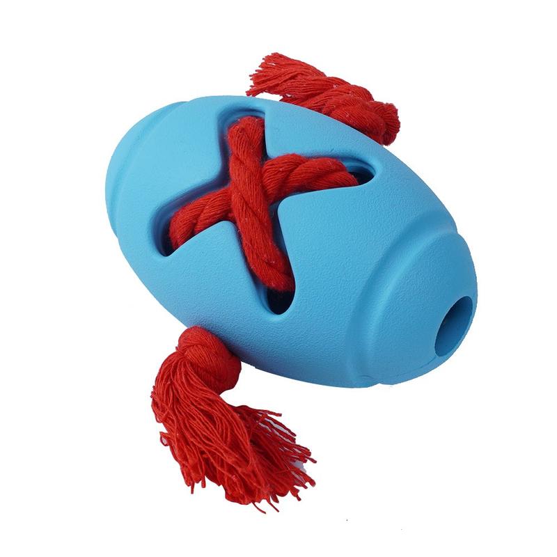 - Rugbybalontwerp: De unieke vorm zorgt voor een onvoorspelbare stuiter, waardoor je hond bezig en vermaakt blijft.