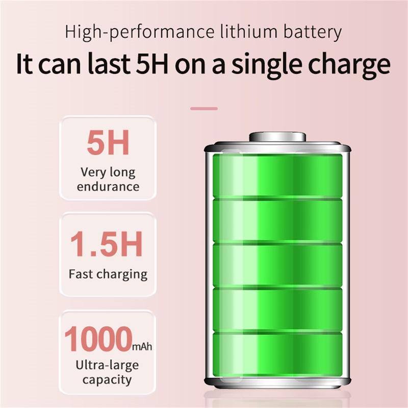 - Lange levensduur van de batterij - Aangedreven door een oplaadbare batterij van 1000 mAh, die tot 5 uur continu gebruik mogelijk maakt bij één keer opladen van 1,5 uur via de Type-C interface.