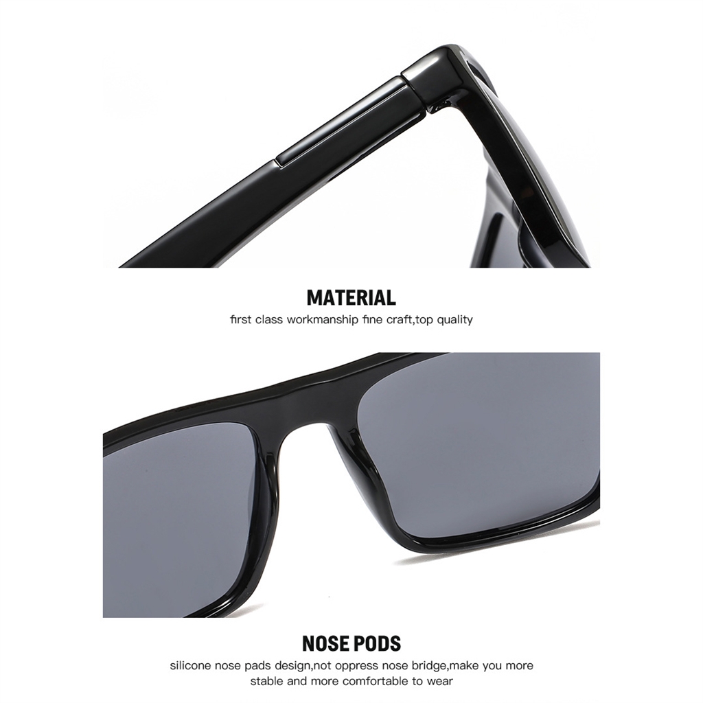 Deze zonnebril combineert moderne stijl met praktische prestaties. De gepolariseerde TAC-lenzen en het duurzame PC-montuur zorgen voor scherp zicht en betrouwbare bescherming, waardoor ze een perfecte metgezel zijn van de straten van de stad tot bergpaden.