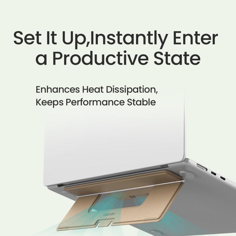 Upgrade je werkplek, verbeter je houding en bescherm je laptop met de NILLKIN Dual-Wing Adhesive Laptop Stand - je vertrouwde partner voor moeiteloze productiviteit onderweg.