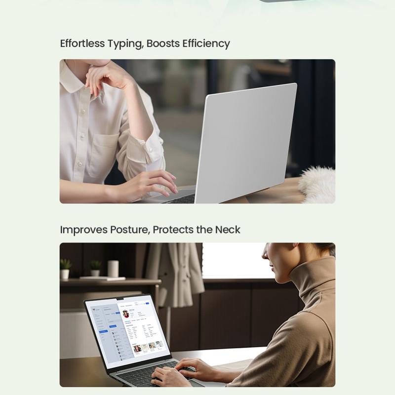 - Duurzaam en lichtgewicht materiaal: Eersteklas materialen bieden stabiliteit voor laptops tot 17 inch, terwijl ze toch licht en gemakkelijk hanteerbaar blijven.