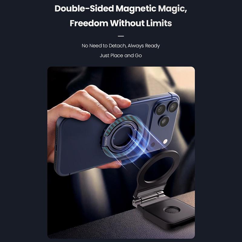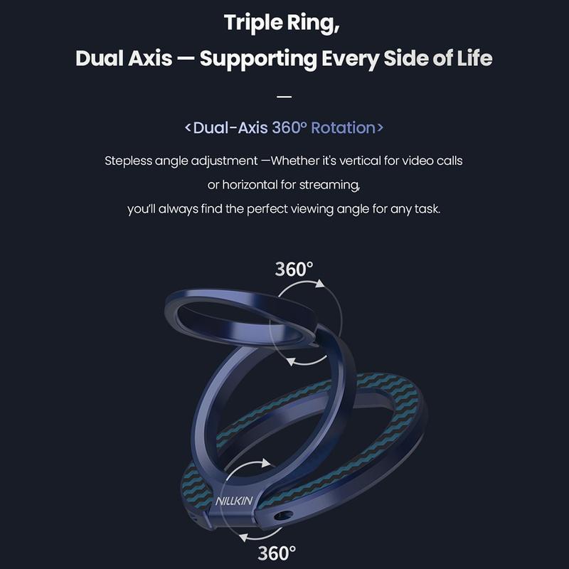 FiberSnap combineert een elegant ontwerp met praktische flexibiliteit. De ring met twee assen biedt een veilige, natuurlijke grip, terwijl de traploze hoekregeling zorgt voor de perfecte kijkpositie elke keer. Met dubbelzijdig magnetisme en hoogwaardige materialen biedt het gemak en stijl in één compact accessoire.