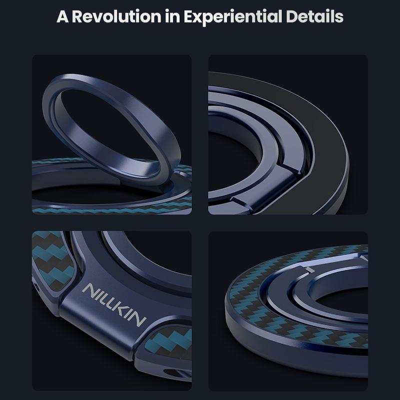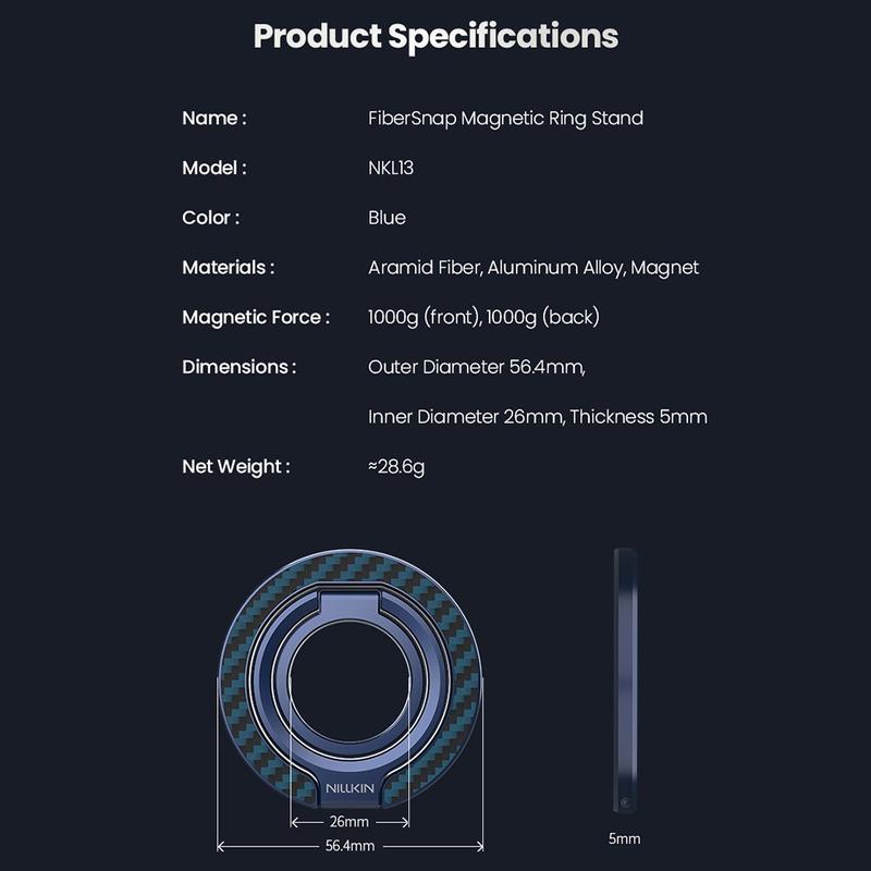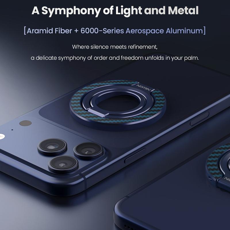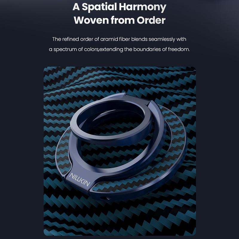 De Nillkin FiberSnap Magnetic Ring Stand combineert eersteklas materialen met flexibele functionaliteit om het dagelijks gebruik van de telefoon te verbeteren. Gemaakt van lichtgewicht aramidevezel en geanodiseerd aluminium, levert het een verfijnde technische esthetiek terwijl het een stevige grip biedt en moeiteloos handsfree kijken. Hij is ontworpen voor naadloos MagSafe gebruik en past zich soepel aan aan werk, reizen en het dagelijks leven zonder in de weg te zitten.