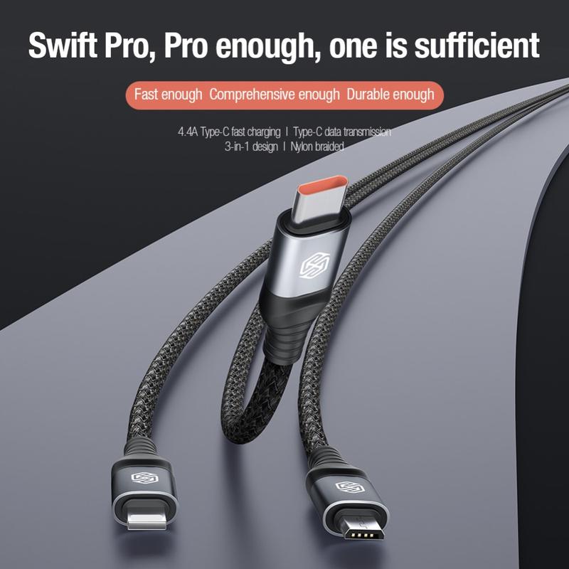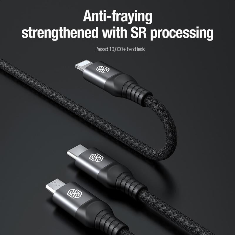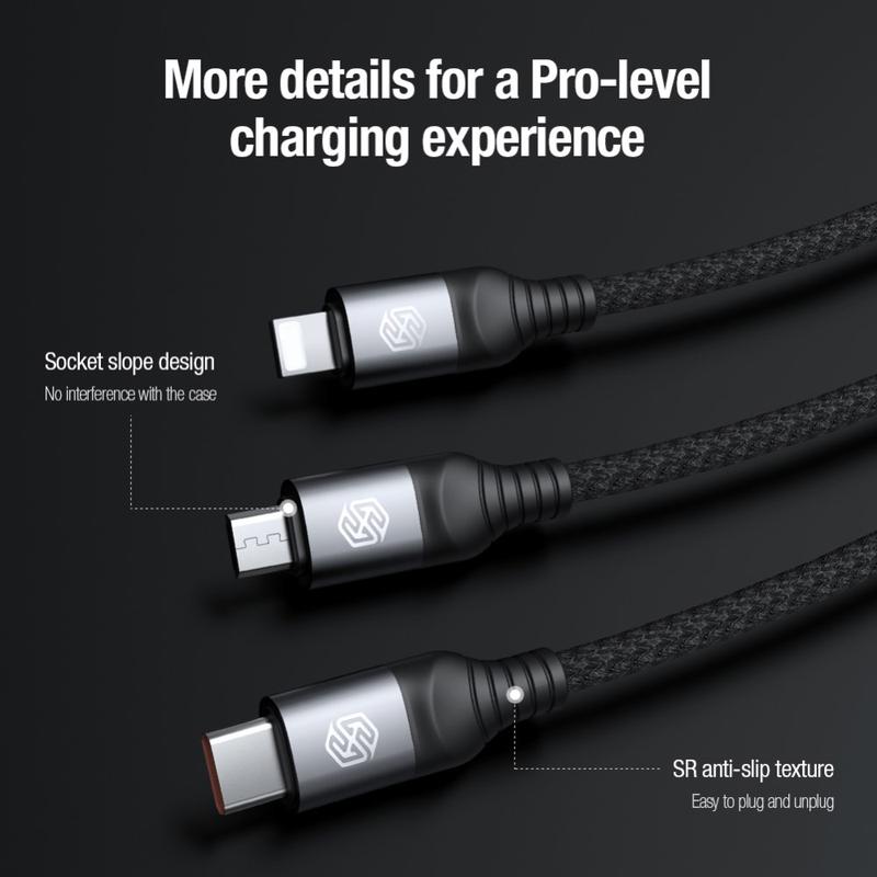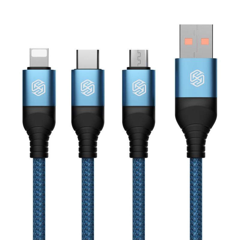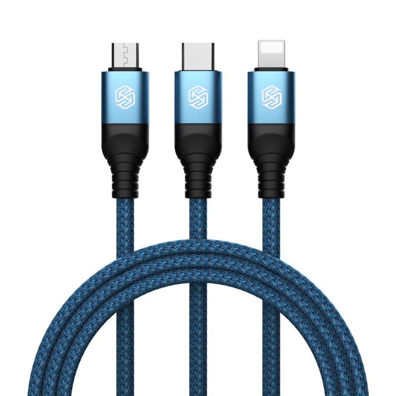 NILLKIN Swift Pro 3-in-1 Kabel Nylon Gevlochten USB naar Type-C / iP / Micro Oplaadsnoer - Blauw