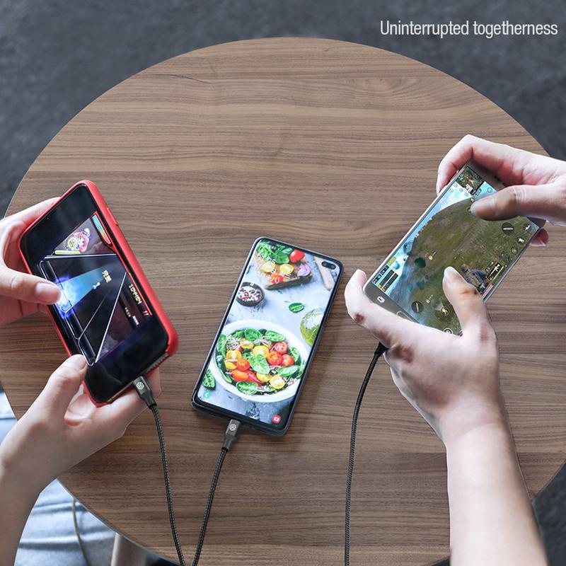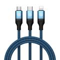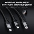 Versterkte nylon gevlochten kabel: Gemaakt met een duurzame, gevlochten nylon kabel voor extra stevigheid en een lange levensduur. De hoofdkabel van 1 meter en de gesplitste kabel van 0,5 meter bieden flexibele oplaadopties