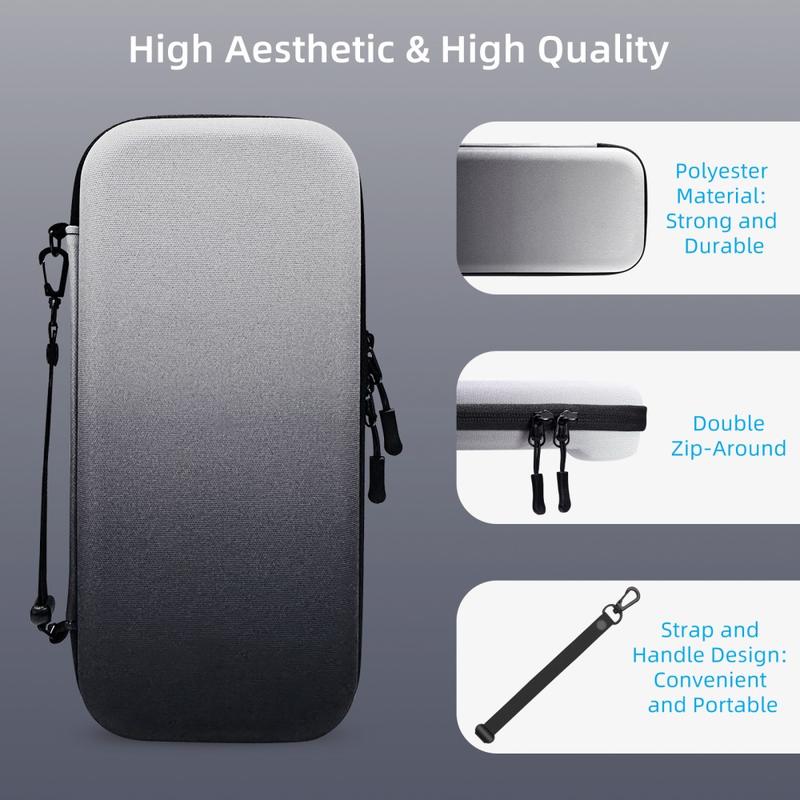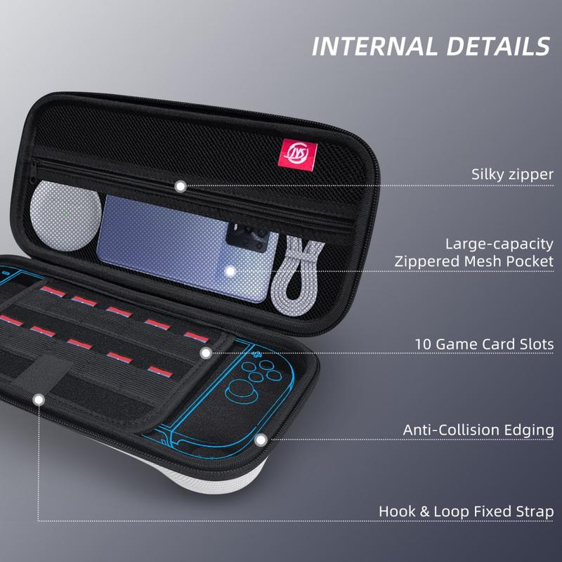 Organiseer, bescherm en vervoer je Switch 2 met een lichtgewicht hardschalige hoes die de console en accessoires scheidt, tien cartridges opbergt en stoten absorbeert.
