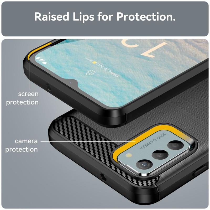 Het hoesje van geborsteld TPU beschermt je Nokia G22 voldoende en geeft het een geweldige stijl, dankzij het koolstofvezelpatroon op de achterkant. De case zorgt ook voor oververhitting bij gebruik van je Nokia G22, met zijn ontwerp voor warmteafvoer.