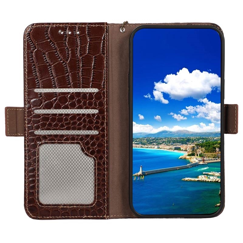 Een lichtgewicht en zachte portemonnee met een unieke krokodillentextuur, de perfecte keuze om uw Nothing Phone (2) te beschermen en onbeschadigd te houden. Het is gemaakt van hoogwaardig echt leer en innerlijk TPU-materiaal, ontworpen met drie kaartsleuven, een ID-sleuf en een zak voor contant geld, ideaal voor het dragen van uw essentie naast uw Nothing Phone (2). Ook blokkeert RFID -technologie signalen effectief en bewaart uw gegevens beveiligd.
