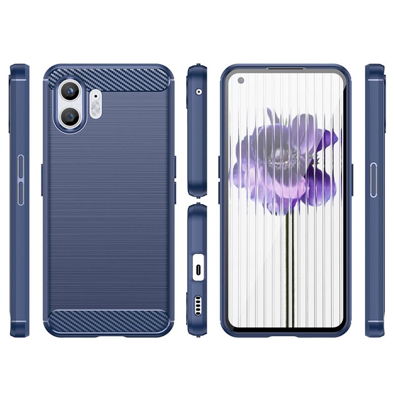 Bescherm je Nothing Phone (2) tegen ongewenste beschadigingen en vallen met deze coole geborstelde TPU hoes. Deze flexibele hoes heeft chique koolstofvezelaccenten die bijdragen aan de stijl en moderne uitstraling van je Nothing Phone (2).