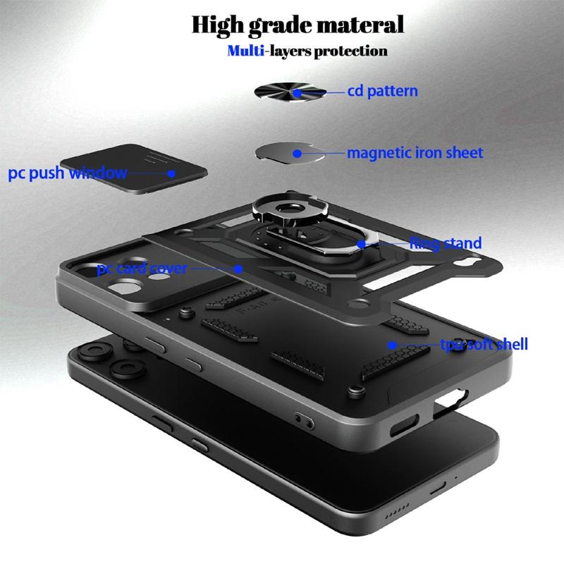 Gemaakt van premium plastic, TPU en metalen materialen, is deze case voor Nothing Phone (3a) Lite gebouwd om de tand des tijds en bescherming te doorstaan. Met meerdere functies beschermt het perfect je Nothing Phone (3a) Lite en maakt het ook comfortabel om te gebruiken en te kijken dankzij de roterende ring aan de achterkant.