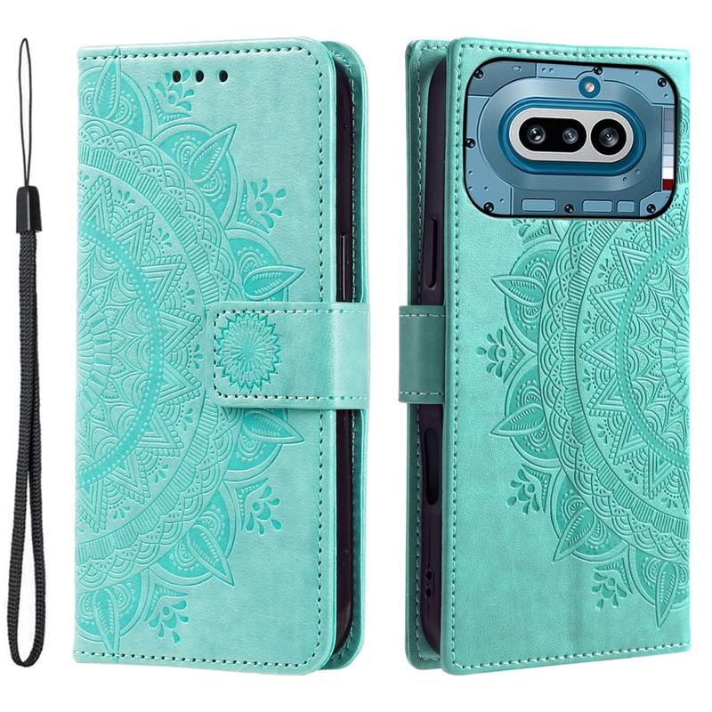Nothing Phone (4a) Mandala-portemonneehoesje met polsbandje - Mintgroen