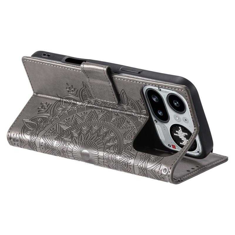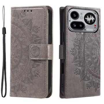 Nothing Phone (4a) Pro Mandala-portemonneehoesje met polsbandje - Grijs