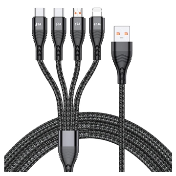 Nylon Gevlochten Universele 4-in-1 USB Kabel - 6A USB-C, 3A USB-C, 2.4A Lightning, 2A MicroUSB - 66W, 2m