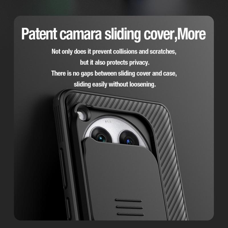 Geniet van extra privacy en bescherming met de Nillkin CamShield Pro hybride hoes. Door de combinatie van hard plastic en TPU voorkomt de camerahoes krassen en beschermt hij je OnePlus 12 tegen dagelijkse slijtage.